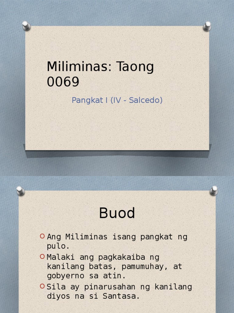 Miliminas taong 0069 summary. Miliminas Taong 0069 She started out normal looking. Tuig 0069 ni Nilo Par. Ito ay binubuo ng higit sa pitong libo at dalawang daang mga pulo.