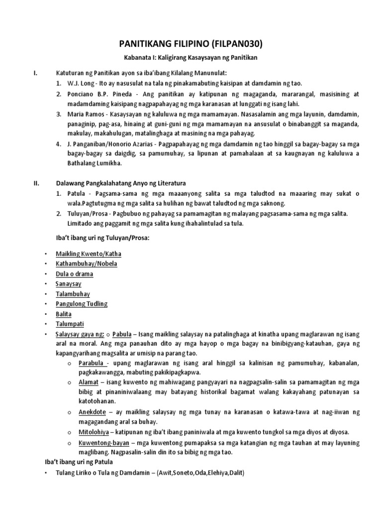 Panitikan Sa Pilipinas Notes Upang Maglarawan Ng Isang Aral Hinggil Sa Kalinisan Ng Pamumuhay Studocu